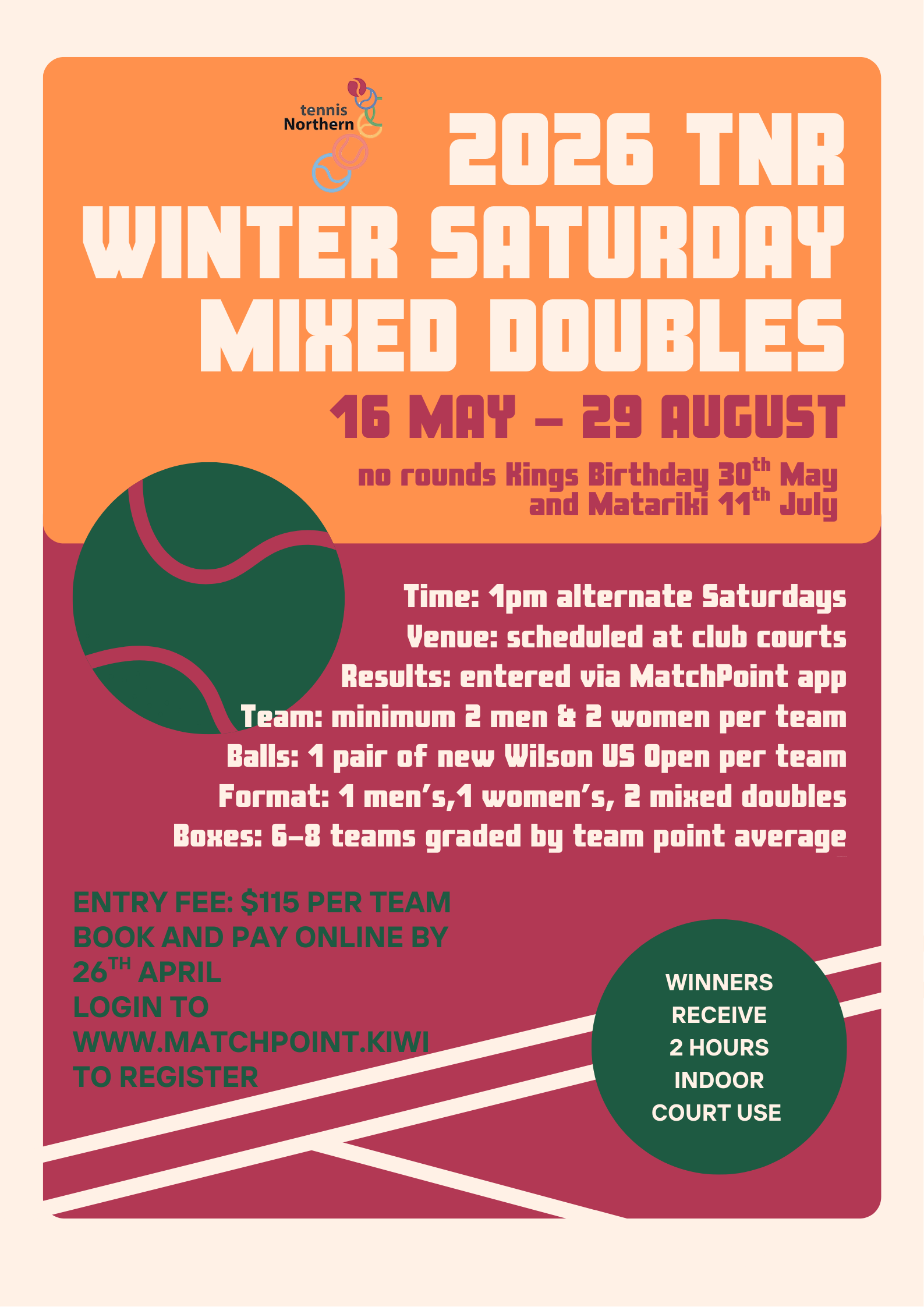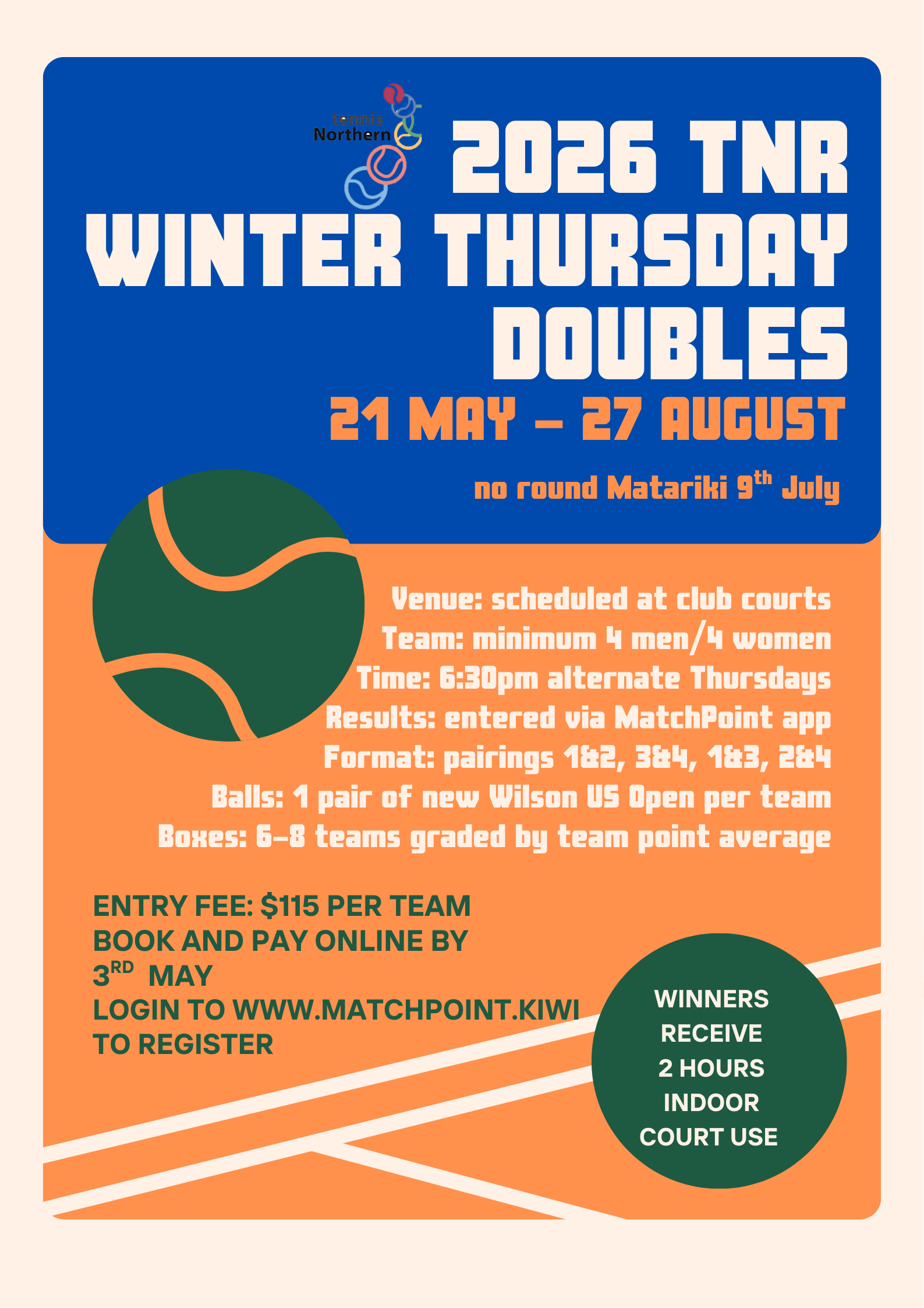 info@tennisnorthern.co.nz Ext: 3